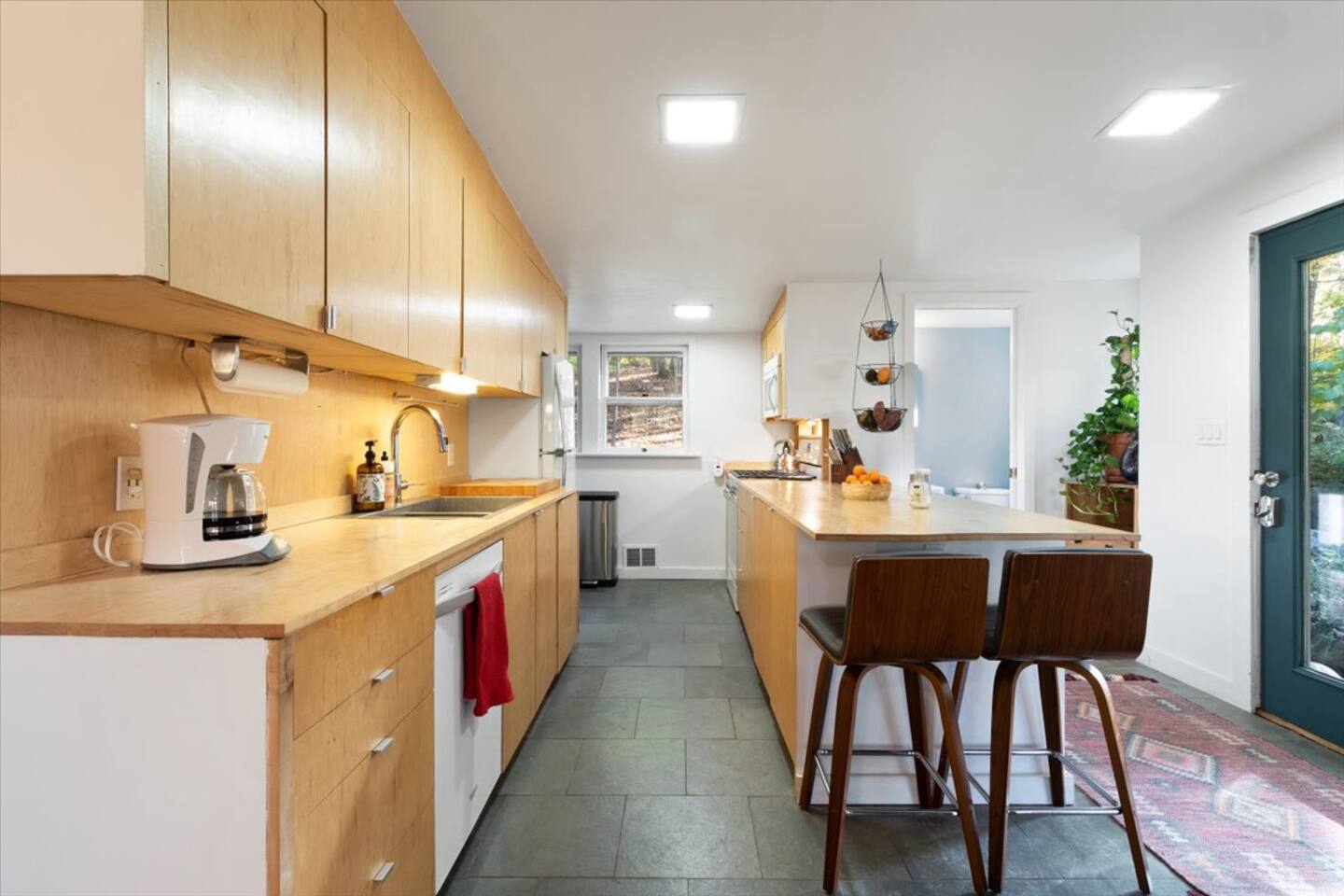 Welcome to Grotto Grove – A Peaceful Nature Retreat Our home is the perfect escape for friends and families seeking rest and reconnection. While we love animals, pets are not allowed as we maintain a hypoallergenic environment. Enter Grotto Grove through a fully stocked kitchen. To your right is a convenient powder room; to the left, a semi-open floor plan leads to the living room, where a panoramic window offers breathtaking winter sunsets and lush green views in summer. A dividing wall separates the living and dining areas, with a cozy corner bar—ideal for hosting an intimate dinner or enjoying board games and puzzles. Down the hall, you’ll find a full bathroom and two bedrooms. The smaller bedroom features a queen bed, ample natural light, and a dedicated workspace—perfect for remote work. Across the hall, the master bedroom was once a 1950s sunroom and now boasts a king bed, a second workspace, and a wood-burning fireplace for cozy winter nights. The basement is used for storage but can be unlocked upon request if you need access to the washer and dryer. Outdoors, enjoy the evolving landscape that tells a story through time. The original owner in the 1960s laid the foundation, and the second owner—a skilled landscaper—introduced whimsical hardscaping elements that gave the property its peaceful charm. The current owner (that’s us) have continued the vision by clearing a front yard, adding a hardscaped firepit area, and working to cultivate wildflower gardens and a pollinator-friendly environment. You’ll find peonies, ferns, hostas, hellebores, and more woven throughout the property. We’ve also added a grill for summer cookouts, a set of rocking chairs and umbrellas out front for slow mornings or sunset evenings, and a quiet table for two tucked behind the house—perfect for intimate conversations under the trees. A Note About Nature Grotto Grove is truly a nature lover’s paradise. Expect to see deer, birds, foxes, the occasional bear, and of course, insects. While we take every measure to keep pests outside, you may encounter spiders, bees, moths, and mosquitoes. If you’re highly sensitive to nature’s critters, this may not be the ideal spot for you. Child Policy Please note: the house is not child-proof and is not suitable for toddlers or infants. Children over the age of 10 are welcome.