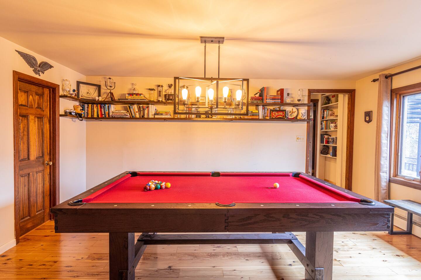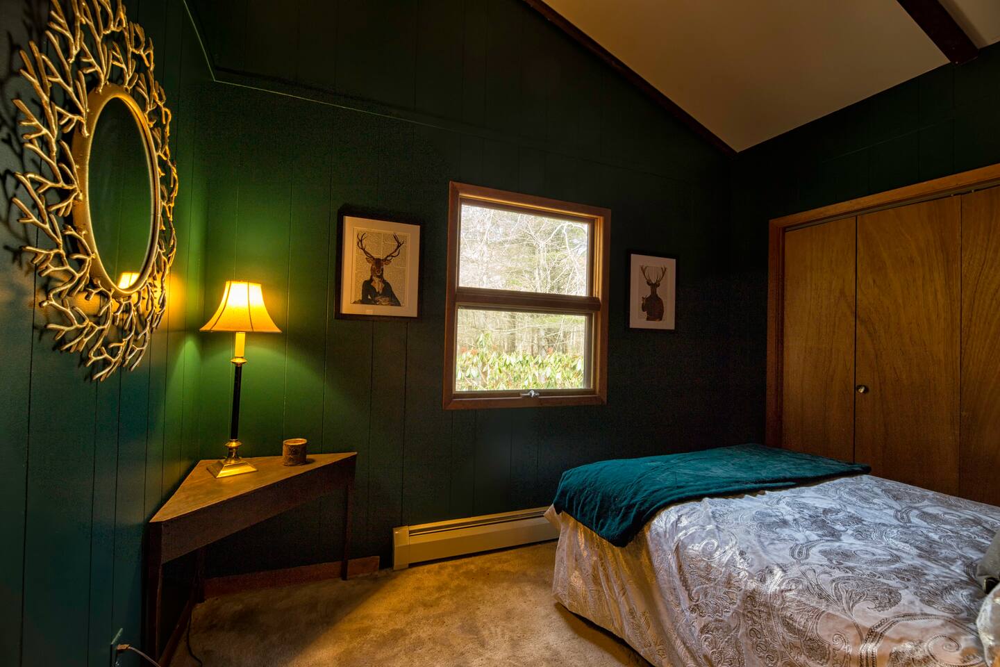 A nature-immersed retreat offering creek views, an 80-ft deck, fire pit nights, wildlife watching, and roomy, cozy interiors with full-home a/c! 🏷 Main Floor Kitchen & Dining Room ∙ FULLY stocked kitchen w/plenty of counterspace for at-home baking and cooking ∙ Coffee maker, tea kettle, and toaster ∙ Cooking oils and seasoning essentials ∙ Abundance of dishware, glassware and silverware, including children’s ∙ Full-sized fridge and freezer ∙ Glass cooktop and oven ∙ Microwave ∙ Dishwasher ∙ Dining room table, seating for 6 ∙ Breakfast nook ∙ Large glass window and enjoy picturesque creek views Living Room #1 ∙ 55” 4K Smart TV ∙ Netflix, Prime Video, Disney Plus, Hulu, HBO and more ∙ Sonos sound system ∙ Electric fireplace ∙ Access to the deck Daybed(Twin bed) ∙ Board games ∙ Bar counter w/ sink ∙ Sofa footrest Living Room #2 ∙ Sound system ∙ Indoor fireplace ∙ Books ∙ Vintage record player ∙ Pool table ∙Access to deck Bathroom #3 (Half Bathroom) ∙ Single vanity and mirror ∙ Makeup washcloth Washer & dryer 🏷 2nd Floor Bedroom #1 (Master Bedroom) (The Black Forest) ∙ King size bed ∙ Premium mattress and comforter ∙ Smart TV ∙ Room darkening shades ∙ Bedside table and lamp ∙ Large closet w/ hangers ∙ Full-length mirror ∙ Books Bedroom #2 (The Evergreen Forest) ∙ Queen size bed ∙ Premium mattress and comforter ∙ Ceiling fan ∙ Room darkening shades ∙ Bedside table and lamp ∙ Cow skin floor carpet ∙ Private balcony Bedroom #3 (The Deer Den) ∙ Full-size bed ∙ Premium mattress and comforter ∙ Room darkening shades ∙ Bedside table and lamp Bedroom #4 (The Fox Den) ∙ Full-size bed ∙ Premium mattress and comforter ∙ Room darkening shades ∙ Bedside table and lamp ∙ Ceiling fan ∙ Workstation Bathroom #1 ∙ Shower ∙ Double vanity w/ large mirror and plenty of counterspace ∙ Shampoo, conditioner and body soap ∙ Makeup washcloth Bathroom #2 ∙ Shower & Bath ∙ Single vanity w/ mirror ∙ Shampoo, conditioner and body soap ∙ Makeup washcloth 🏷 Outdoor Space(s) Balcony ∙ BBQ grill ∙ Outdoor seating ∙ Balcony offers a serene, unobstructed view of the river Back yard ∙ Firepit with outdoor seating ∙ Yard games - cornhole, bocce ball, Kubb and more! ∙ Hammock (available seasonally) ∙ Fishing supplies and local fishing recommendations available 🏷 Parking Free parking on premises for 6+ vehicles 🚘 Nearby ∙ Callie’s Candy Kitchen (5 min): Local favorite known for handmade chocolates and candies. Fun stop for families or anyone with a sweet tooth. ∙ Big Bass Lake (7 min): Peaceful lake setting perfect for relaxing, walking, or taking in calm nature views. ∙ Varden Lake (8 min): Small scenic lake with light trails and quiet surroundings. ∙ Indian Mountain Lake (9 min): Lake community offering calm water views and an easy nature outing. ∙ Lake Naomi (10 min): Popular recreational lake great for water views, strolling, or enjoying the outdoors. ∙ Bushkill Falls (17 min): One of the most iconic waterfalls in Pennsylvania with hiking trails and scenic views. ∙ Pocono Premium Outlets (20 min): Large outlet mall with many brand-name shops and food options. ∙ Camelback Mountain Resort (22 min): Major attraction with skiing, snow tubing, adventure park, and waterparks. ∙ East Emerald Lake (22 min): Tranquil lake offering nature walks and a quiet outdoor atmosphere. ∙ Arrowhead Lake (23 min): Relaxed lake community with trails and peaceful natural surroundings. ∙ Delaware Water Gap National Recreation Area (30 min): Huge natural area with river views, hiking trails, waterfalls, and scenic overlooks. ∙ Promised Land State Park (30 min): State park offering hiking, boating, fishing, and forest exploration. ∙ Skytop Lodge Adventure Center (32 min): Adventure activities including treetop courses, ziplining, and guided nature outings. ∙ Great Wolf Lodge Pocono Mountains (35 min): Popular family destination with huge indoor waterpark and kids’ activities. ∙ Tobyhanna State Park (35 min): Lakefront park with trails, kayaking, picnicking, and wildlife. ∙ Mount Airy Casino Resort (40 min): Casino, spa, golf, and dining—great for adults looking for evening entertainment. ∙ Jim Thorpe Historic Downtown (45 min): Scenic town known for charming shops, cafés, historic buildings, and great photo spots. ∙ Hickory Run State Park (45 min): Large park featuring boulder fields, waterfalls, and long scenic trails. ∙ Blue Mountain Resort (50 min): Skiing, hiking, and mountain adventures with seasonal events. ∙ Lehigh Gorge Scenic Railway (55 min): A scenic train ride through the Lehigh Gorge offering unique views and a memorable experience.